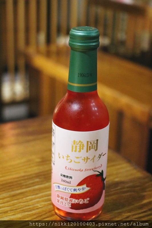 草莓汽水,帶有草莓的香氣及果香,不管是搭配握壽司或是串燒都很好配。