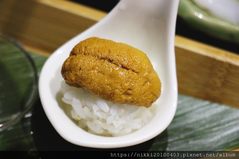 海膽和干貝這兩個奢華的食材搭在一起讓人看了就大呼過癮,一口吃下海膽的鮮味和干貝的甘甜,形成了完美的交響曲,在口中迴響不絕