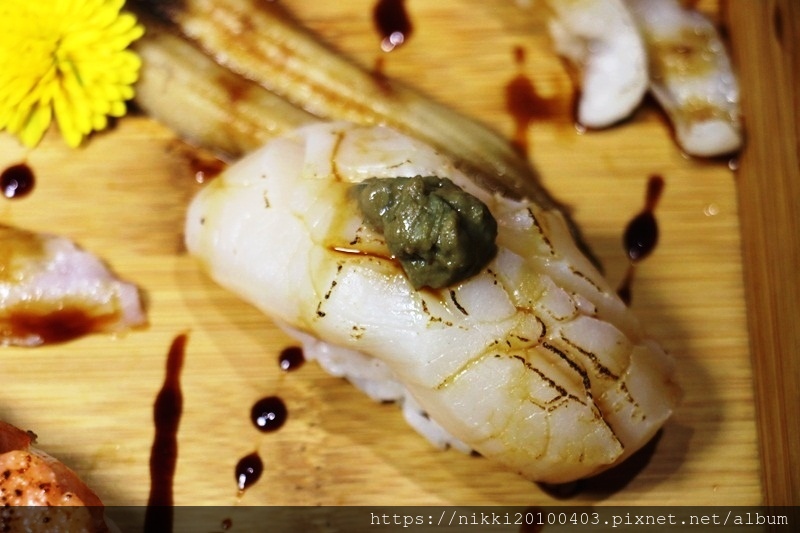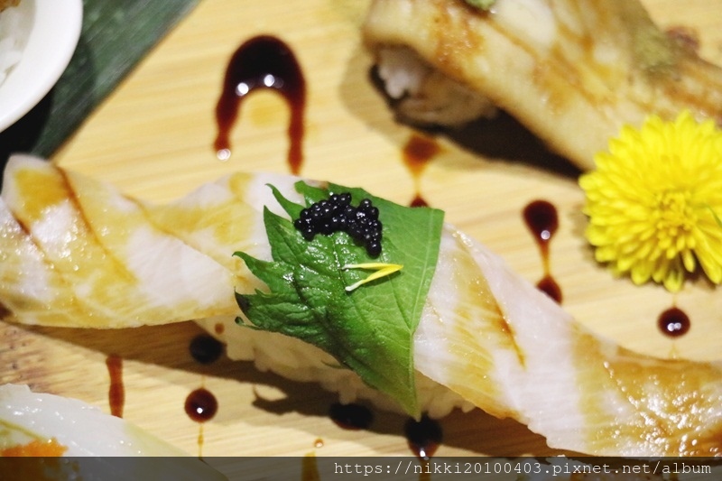 海鱺握壽司,新鮮的肉質帶有脆脆的口感 非常大片的海鱺, 讓人大呼過癮。