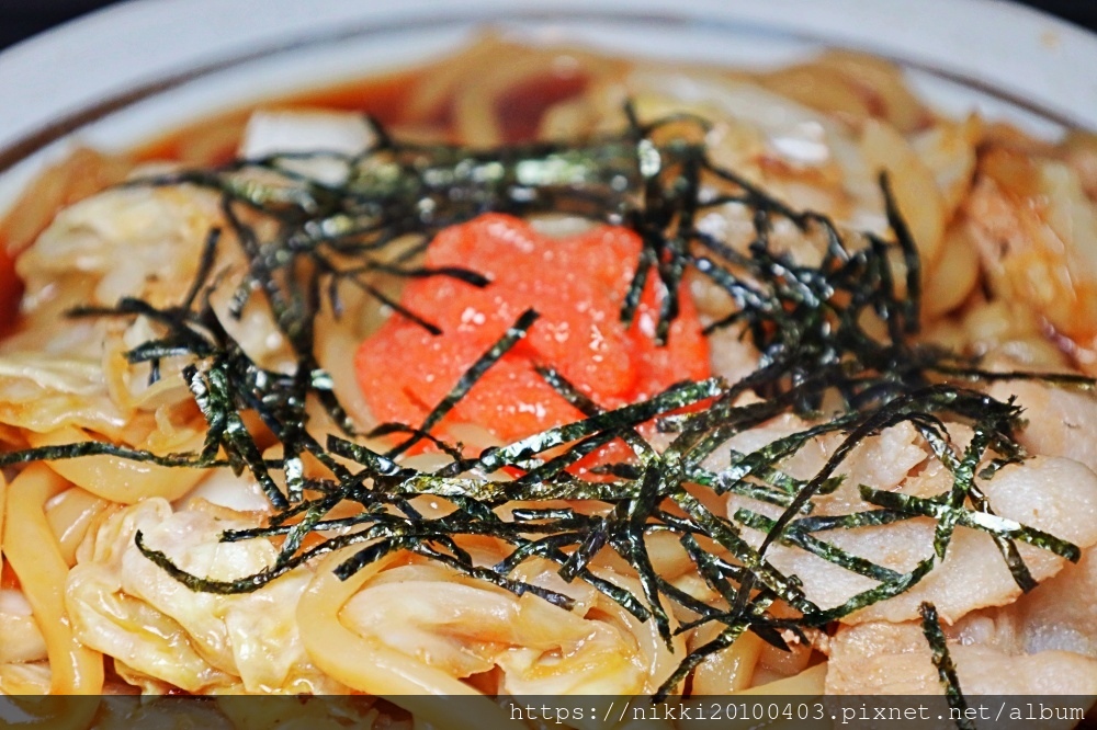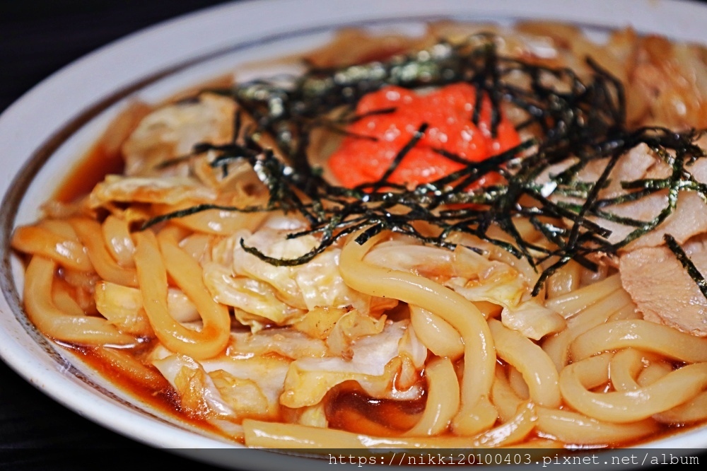 妮妮很推薦的一道熱炒美食,炒烏龍麵散發半透明的光澤, 上頭撒滿的海苔及明太子,讓人一看就胃口大開,烏龍麵滑順的口感,讓人一口接一口,而且味道很有入味。
