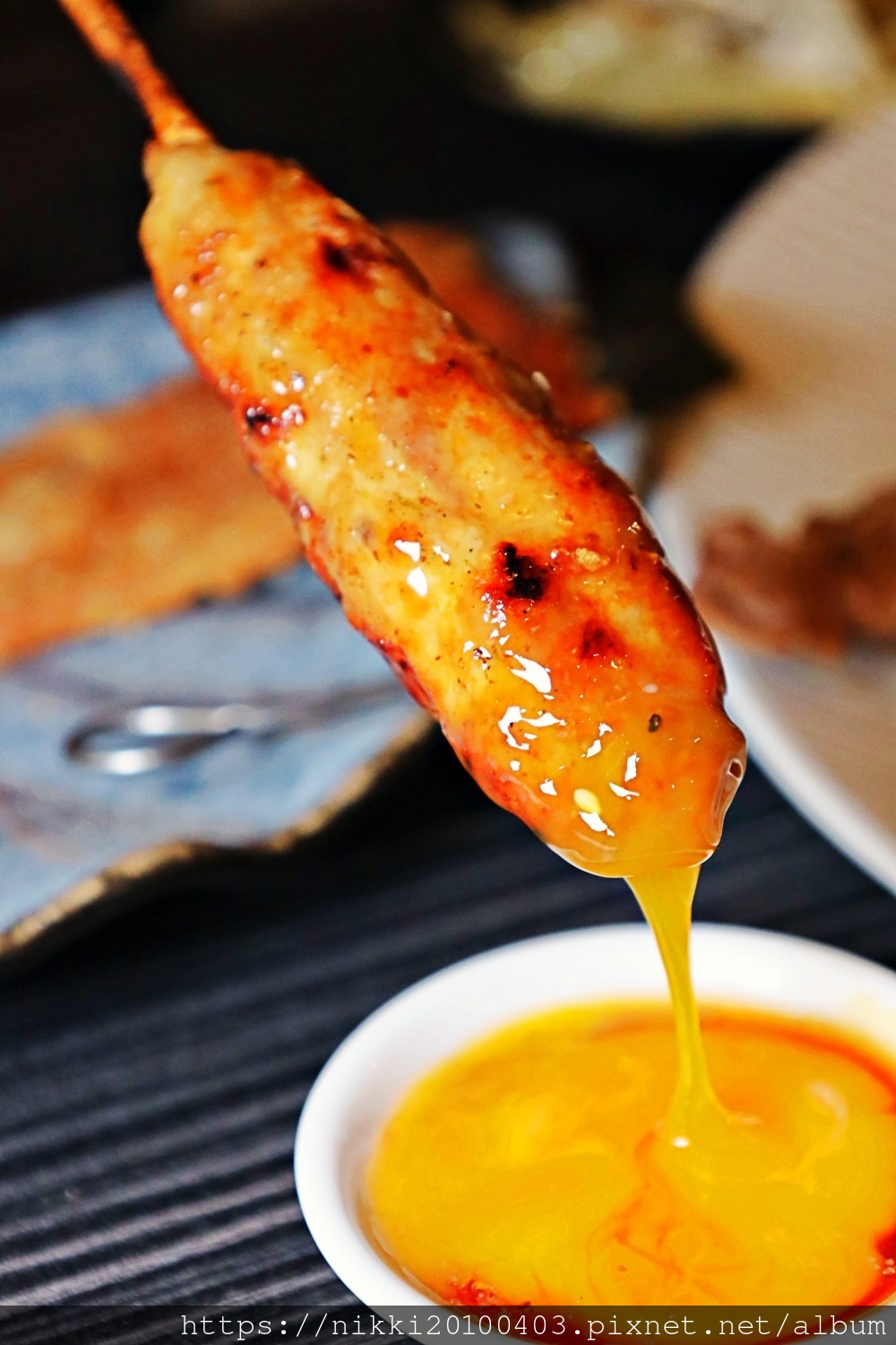 雞頸肉,是已經將骨頭去掉,算是一到相當費工夫的串燒,雞頸肉烤到恰到好處,而且一點都不油膩,每一口都會噴汁喔,好吃。