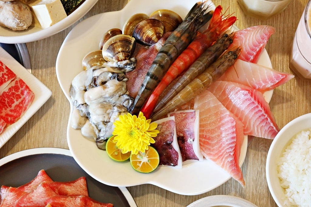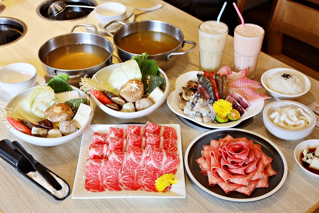 套餐用料相當講究,肉品等級高,油花分布細緻均勻,入口軟嫩多汁,完全是肉控的天堂。除了肉品必點,豐富的海鮮鍋更是老饕最愛,鮮蝦、蛤蜊、魚片、花枝一次滿足,鮮甜滋味讓人忍不住回味。
