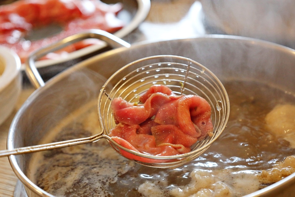 牛小排則是肉品中的焦點,油花分布細緻均勻,下鍋輕涮幾秒即可入口,軟嫩中帶著濃郁的牛肉香氣,讓人忍不住一片接一片。