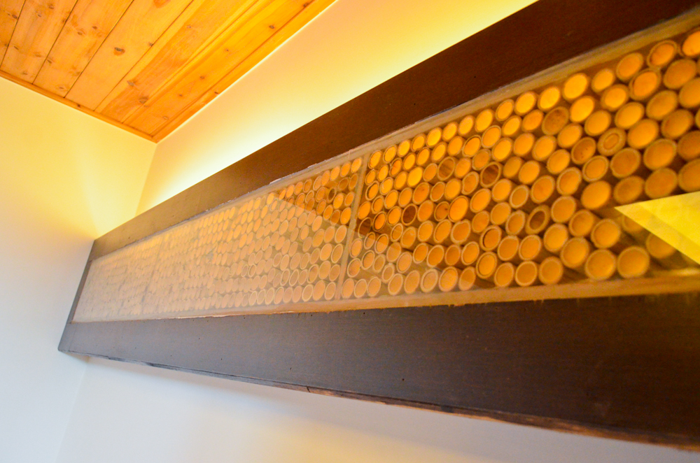 一段段小竹筒排列而成的壁燈,優雅展現了奮起湖的竹之美