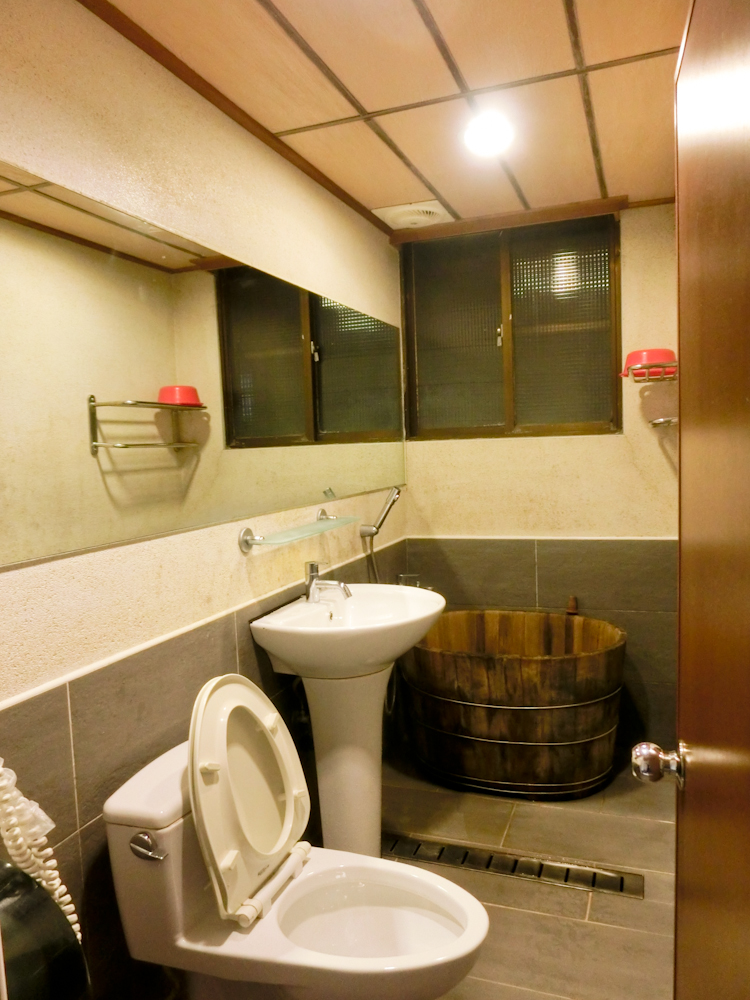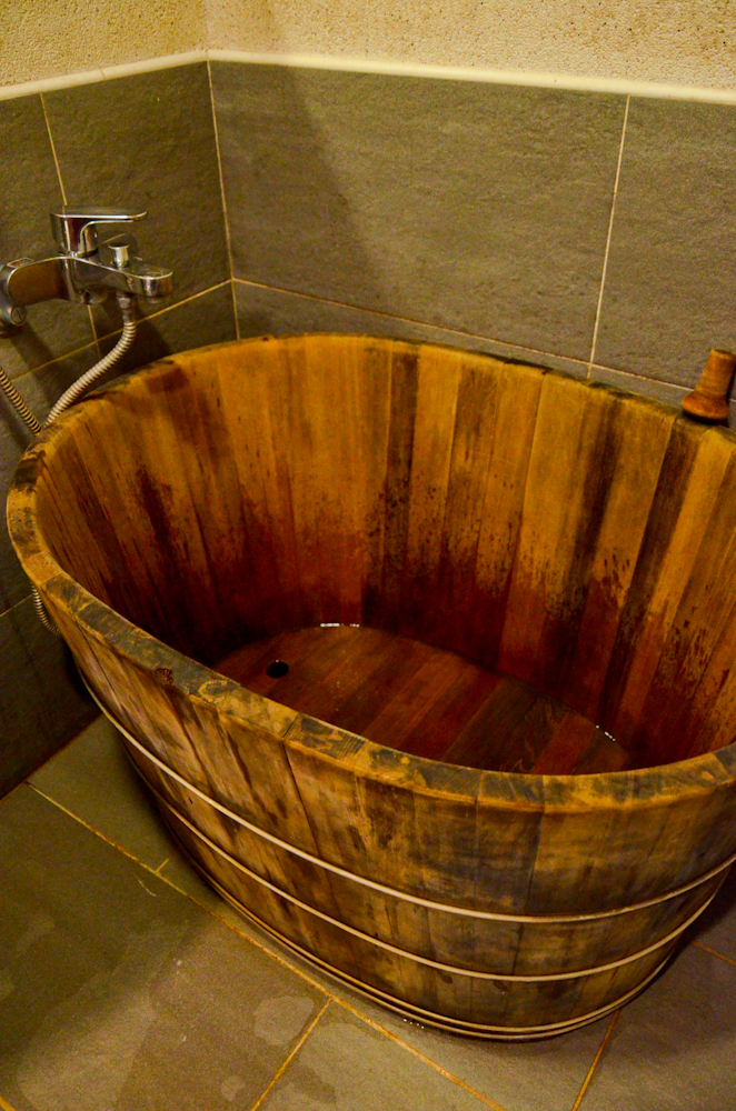 靜靜地坐在這檜木澡盆裡泡湯,很容易舒服地睡著...Zzzz....( 喂~醒醒呀~)
